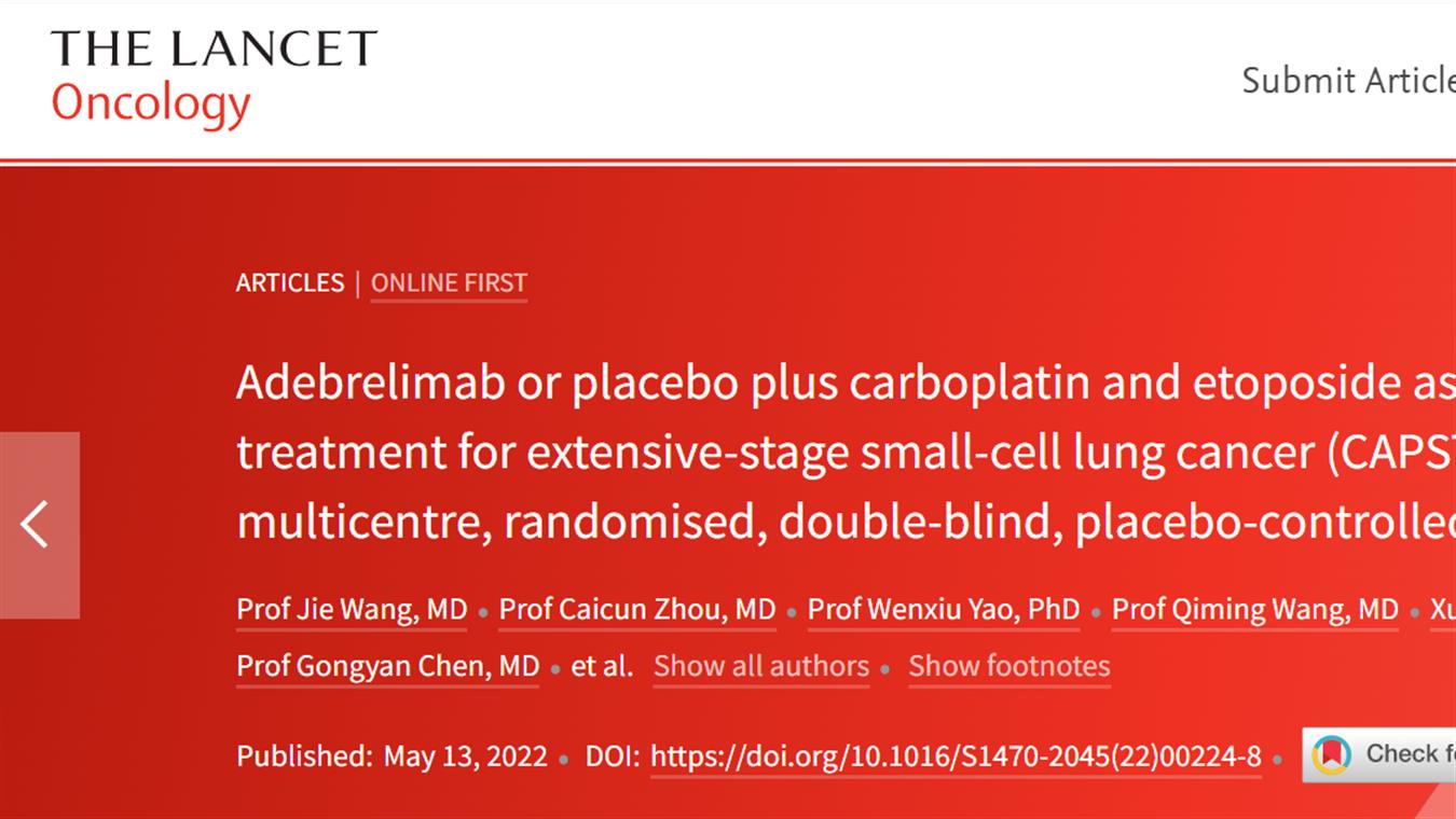 918博天堂卡瑞利珠单抗联合阿帕替尼最新研究成果荣登《柳叶刀·肿瘤》